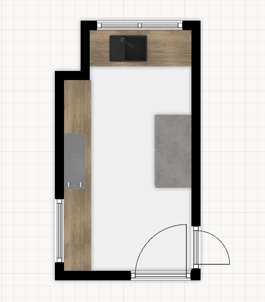 In jouw ontwerp heb je wel de ingang van mijn keuken geblokkeerd. Ik denk dat je het hebt aangezien voor een raam, maar links onderin is de open doorgang naar mijn woonkamer
