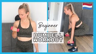 Dumbell training voor thuis, maar ook veel oefeningen zonder dumbells (heb 2 van die gewichtjes thuis, dus ik kon mét doen). Ik heb hem niet afgemaakt, vond hem pittig! Maar wel heel fijn om aan mee te doen en prettige manier van voorbeeld geven. Ik ga hem nog wel eens doen denk ik, hopelijk kom ik dan nog wat verder.
