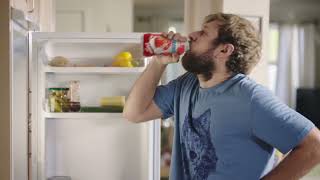 Op de Duitse tv is er reclame van een man die stiekem aan een fles zuivel drinkt: