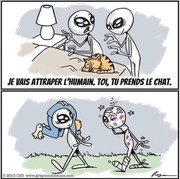 Mweh, ik moet het maar eens anders bedenken. Dit gaat over marsmannetjes en katten.
